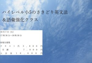 10月7日火曜 17時30分~18時30分 ハイレベル小5の中1英文法クラススタートです