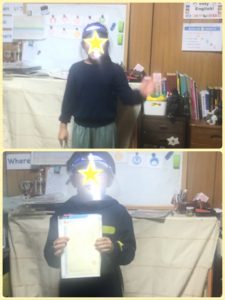 一人金曜日クラスに移動。もう一人はお休みで、今日は二人だけのレッスンになってしまいました。急に二人きりで「淋しい」とOT. クモの歌は上手に歌えるようになりました。もう1週歌ってみましょう。指遊びもできるようになっていました? The Secret birthday Messageの絵本はなんとか二人とも全ページクリア。多めにみてあげた部分もあるので、まだまだしっかりお家で読む練習をしてもらいたいと思います。オリジナルストーリーもできました!「自分が言える英語で作ってね」と言ったのですが、言えないものもありました。それはしっかりと覚えましょう。Speech Adventure 1はユニット5までの長いスピーチにチャレンジ。これを練習することは宿題に出していました。ハロウィンレッスンも挟んでいるので2週間練習する時間はあったのですが、二人とも練習していませんでした。練習しなければ上手には言えるようにはなりませんね。地道な努力は必要。頑張って!