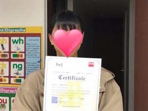 準2級合格のRさんと Hさんは小学4年生から英語を始めて5年。よく頑張りましたね!