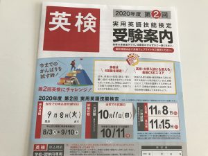 今年度は10月に、2020年度第2回『英検』を当教室で実施します。