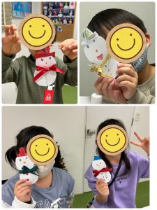 小さい子はスノーマン、大きい子達はボール型オーナメントを楽しく作りました。