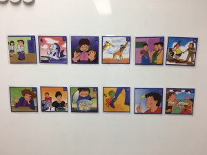 7月のオープンクラスデーが終わってから、テキスト『英会話たいそう』Unit 2 に入りました。もうすでに一人ずつ、1対1の会話練習ができるようになりました。みなさんからの『Unit 3』に早く入りたい!!との要望を受け、来週 大きなジェスチャーで上手に会話練習ができたら次に進みましょう!と約束しました。このUnitでは”Can I go to the bathroom?””Can I have some water?”など教室やご家庭でも使える表現がたくさんあります。