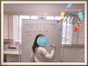 アルファベットの学習では、みんな大文字、小文字、自分の名前を書けるようになりました。