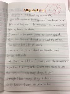 自分が体験したこと、感じたこと、思ったことを英語で発表。
