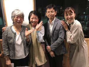 左から、松香洋子先生と田中千穂先生、小学校英語の大ベテラン松本先生と私。