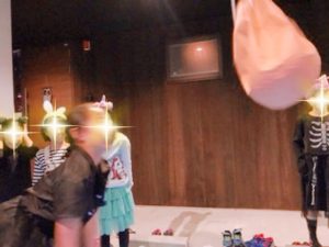 今年のゲームは『Gesture Race!』AとBの2チームに分かれてハロウィンのキャラクターのジェスチャーを順番にしていきます。1分間のうちにいくつ答えられるか競います。