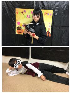 教室玄関に写真を貼り出しますので、最高だと思う仮装に1票を入れてくださいね!