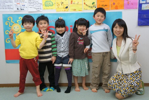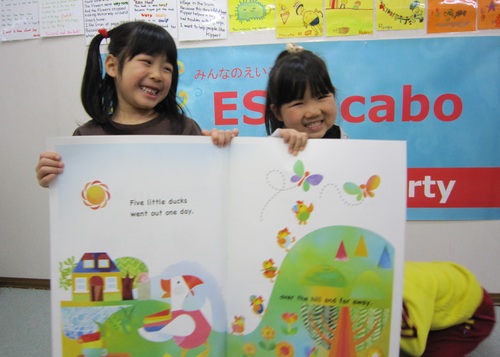 からだ全体を使って英語で体操、うたっておどって英語の音とリズムを吸収していきます。みんなとても気に入っています。