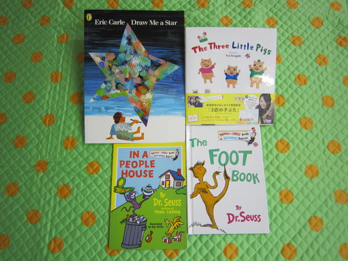 また小学生の4クラスで発表会に発表する絵本をクラスごとに選び、左の写真の4冊にそれぞれ決定!