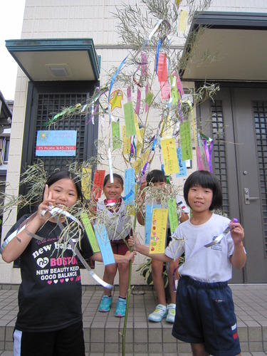 七夕の短冊に将来の夢やお願い事を書いて、飾りました!
