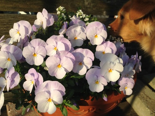 写真右 : ビオラとスィートアリッサムがきれい。