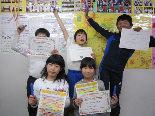 最終レッスンでは Perfect Attendance、Presents and Eiken Jr.!