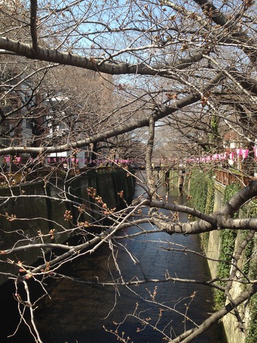 東京で桜開花宣言がでた次の日に、目黒川へ行きましたがまだ咲いてなかった~!