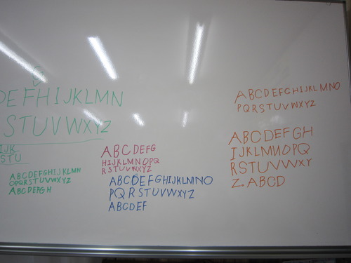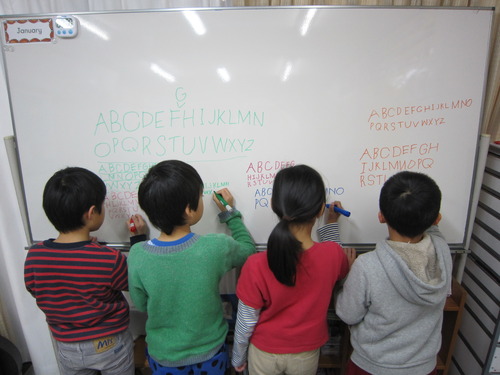 小学2年生クラスではこの一年、「英会話たいそう」とアルファベット大文字小文字