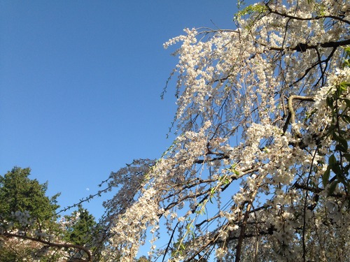 右:野依のしだれ桜。天気の良い午後にお月様と桜が本当にきれい!