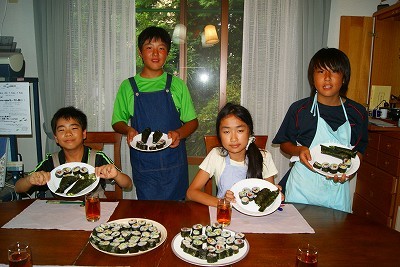今年は「手巻きずし、巻きずし」に挑戦。料理品目を選ぶ基準は外国に行って日本料理をリクエストされ、好評かつ材料面からも作ることが可能なもの。今までに作ったものは、にぎりずし、コロッケ、春巻き、キャロットケーキなど。英語でレシピを読み、作り方を説明して行きます。