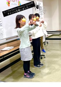 小学校低学年クラスでフォニックスを学んでいるクラスでは、母音の音の聞き分けクイズをやりました。普段のレッスンの様子も見ていただくことで、「音の聞き分けってこうやるのか。」「案外むずかしい?」など感じていただき、お子さまが頑張って学び日々成長している姿を、温かい気持ちで応援していただけたらと思っています。