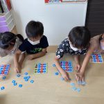親子クラスからのステップアップや姉妹兄弟の学習内容を受け継いでいる頼もしい妹たち(^O^)/初めての親子分離クラスでしたが、保護者さまの心配もよそに45分、5レッスンをクラスメイトと共に見事に楽しみながら参加してくれました。挨拶・出席確認から始まりリズム感の良いチャンツやお歌を一緒に歌ってスタート。見開き型のめくりやすいNGLテキスト学習では、単語を言いながら絵をポイントしたり、テーマに沿ったアクティビティやクラフトをしました。やはりアクティビティは大盛り上がり・・・大きな声で歌ったりアウトプットも笑顔と共にできていることは素晴らしいですね。幼少期からの英語学習には様々な意見はありますが、アウトプット量を分析すると幼少期よりインプットをしっかりされている子供たちは楽しみながら英語に触れられることが確立されているなと実感しております。無限大の成長に期待が膨らみます。