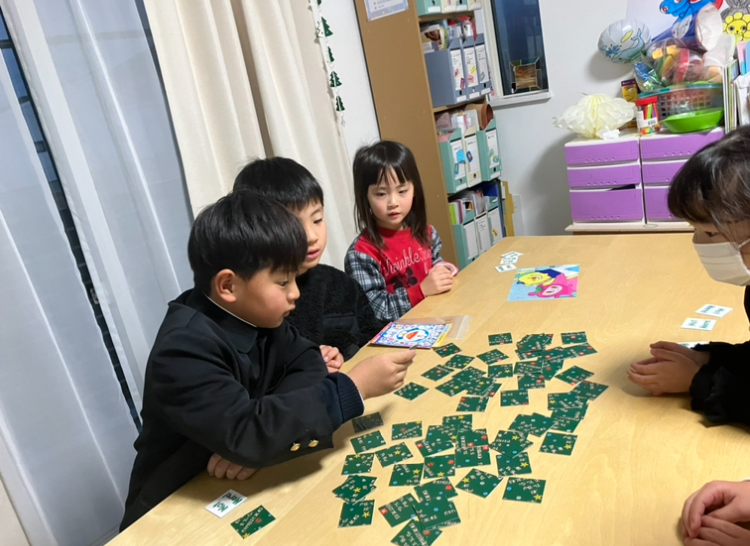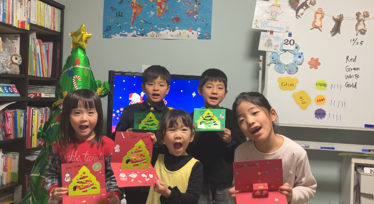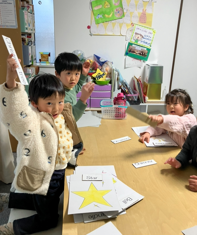 さて、23日でHOPEも2学期終了となりました。今年も2学期最終週は2学期と発表会の振り返りをしっかりした後、クリスマスレッスンを開催。今月の歌は「We wish you a Merry Christmas」と「The Little Bells of Christmas」。ジェスチャーしながら楽しく歌います。アクティビティはクリスマスクイズ、単語カルタ、Santa福笑い、影探し等・・・そして絵本は人気の「Is that you , Santa?」と「Who will guide my sleigh tonight?」に加えて「」の読み聞かせも実施しました。洋書の絵本は絵が素敵なので引き込まれますよね✨