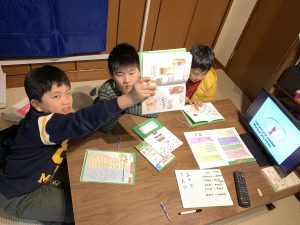 L5のクラスです。Song timeではまずよく歌を聞いて、stressed wordsに印をつけて、声の調子の強弱をつけながら読む練習をしました。”On top of spaghetti”は、強弱がつけやすく、リズムがつかみやすいですね。よく真似をしながら歌うことができました♫。多読用本BBLは、文字を追いながら音読をしていると、お経のように平坦になってしまいがちです。単語単位ではなく、センテンスを通して、強弱がどこにあるのか、よくお手本の音を聞いて見ましょう。そして平坦な日本語とは違う英語のリズムを感じながら、読む練習をして行きましょう。