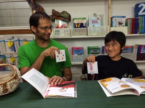 写真3: クラスメートがお休みだったので、Nealさんが椅子を並べてパートナーになってくださいました。 この写真は