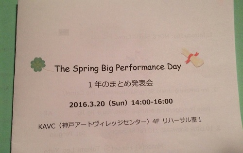 スクールBlog 1年のまとめ発表会 2016.03.20 予定通り(終了時間が30分延長)1年のまとめ発表会を終え、2015年度の全てのカリキュラムを終了することができました。お忙しい時期に多くの保護者様にご参加いただき心からお礼申し上げます。 記事一覧 できたてのホヤホヤのクラブです。 2026.04.06 mpi 神戸パートナー会 2026 チャリティー発表会 2026.04.01 全国の、教室へ通うのは難しいけれど、英語を始めたい皆さんへ 2024.04.15 先生と生徒の「自分との約束20選」 2024.03.31 2024年度もオンラインでGo, Go, Go!!! 2024.04.07 すべて見る 前の記事ただいま発表会の準備中❗️次の記事★ 英語を始めようかどうしようか迷っている方へ スクール紹介 クラス情報 お問い合わせ