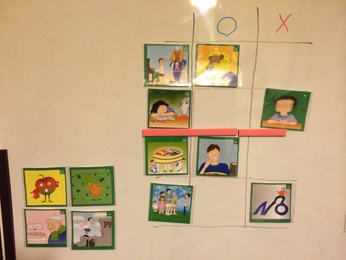 フォニックスは「急かさず確実に」を目標に。3文字のことばはかなり自信持ってできている。それでも皆が時々迷うペア(写真3)は