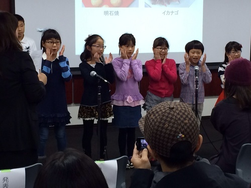 明石焼きとイカナゴ、姫路城と甲子園(球場)と神戸ビーフを2つのチャンツで紹介しました。明石の赤松由梨先生が素敵な映像を用意してくださいました。