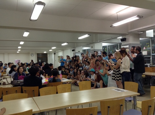 写真2: カフェテリアでのキャストとホストファミリーの初顔合わせ
