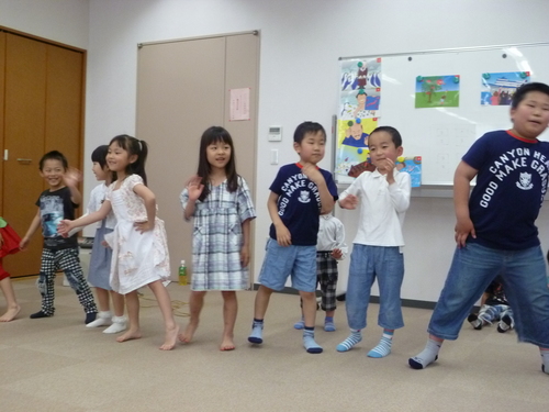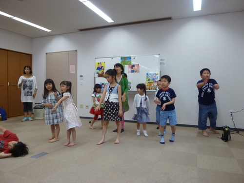 さてさて本番。あっという間の30分。予行演習をしなかったせいか、夢中だったせいか、途中でKenとYUMEのY子さんから「巻き」が入った。内容についても、私自身の反省点は数々あれど、参加してくださった皆さんのはじけた笑顔や元気な声が聞けてとてもハッピーなひと時でした。元気に「英会話たいそう」やロールプレイや会話にがんばってくれた子どもたちに心から「ありがとう!」子どもっていいなぁと改めて感じたひと時でもありました。せっかくのお休みに皆さんで来てくださったご父兄にも心から「ありがとうございます!」この機会を与えてくださったYUMEの皆さんに心から感謝します。