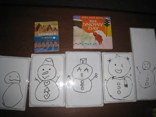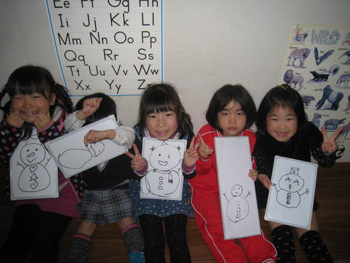 みんなで思い思いに雪だるまを描き、10 Little Snowmen を歌いながら