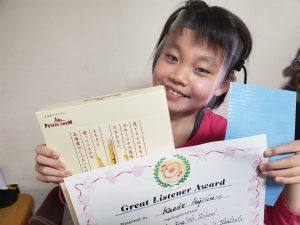 「学校の教科書が分からなくなり入会✏️。みんながペラペラしゃべるのでびっくり?教科書の分からないところを丁寧に教えてもらったし、TAGAKIやBBLで、たくさん読んだり、書いたりするのも楽しかった?。英会話は楽しく、英語が好きになった☺️」