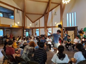 CCSIの生徒さん20名+フレンズ生20名+地元のTeens10名+アメリカから来日した10名に加え、イベントが安全で、楽しくできるようCCSIの保護者の皆さん・OGOB10名が会場・食事・片付け&緊張している子への声掛けなど、本当に細やかなケアでバックアップして下さり、総勢70名でおおいに盛り上がりました