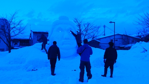 数日後に控えた伝統行事『かまくら祭り』に向け、街のあちこちにはかまくらや雪の彫刻が♪