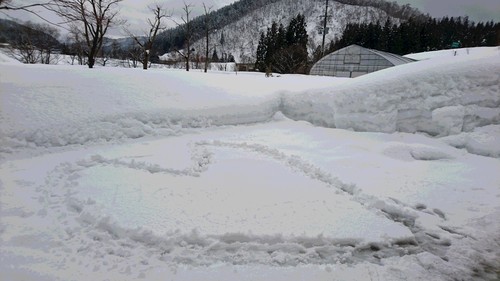母の部屋の窓から見えるように、大きなハートマークの足跡を残して帰途に🚅