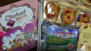 春休みを利用して、台湾にホームステイをしてきたM君(新高1)のお土産(パイナップルケーキ?)とエベレストの麓を巡るツアーに参加したNさん夫妻からいただいたダージリンtea☕&乗換で利用したタイの空港でご購入というぞうさん形のチョコ?
