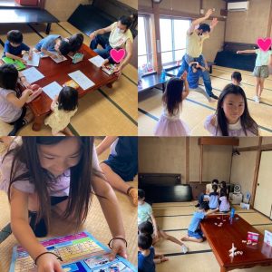 Play Timeではいくつかセットされた遊びのステーションから自分でやりたいことを選んで遊びました。ジェンガチームは色のサイコロを通して英語でcolorを学びながら遊び、おままごとチームはcutting board(まないた)やbread(パン)などワードを覚えていきました。Fishingも人気でしたね! どちらが多くとれるかなど競争も行われていたようでした。