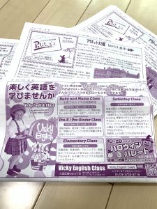 スクールBlog 地元紙 2019.10.04 地元紙、プティぷてぃにVicky English Class が載っていますー! 是非見てみてくださいね♡ クリスマス号にも載る予定です? 記事一覧 HP移転のお知らせ 2025.04.15 お問い合わせ不具合 2023.12.09 クリスマスツリー 2023.12.09 Summer School 2023.08.30 新校舎 2023.07.31 すべて見る 前の記事不具合!次の記事?ハロウィンパレード? スクール紹介 クラス情報 お問い合わせ