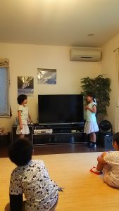 “How about you?”も全員そろって合格です。スキット発表途中で、ダンマリになってしまったお友だちを、ジェスチャーで助けてあげる姿も微笑ましいです。再来週から”That’s Okay.”に入ります。