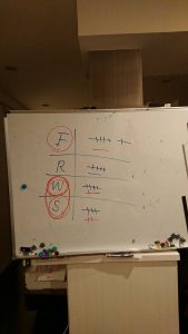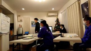 The Visitはp11まで精読を終えました。”Never bother you (me)“は普段から使える表現ですので、しっかり自分のものしてしまいましょう。その後、Christmas activityへと進めました(写真☟)。下の得点表は赤色はskipの回数ですので、赤字の線がない方がベターです。とてもいい勝負でした。