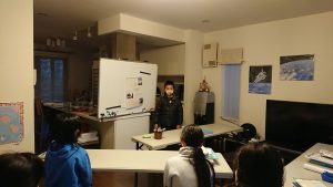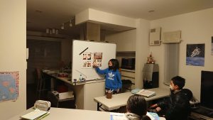 (写真☟)6番手さんです。時間の流れが分かりやすく、また時制の一致も完璧でした。「現在完了の経験用法」も取り入れて、本人のけん玉に対する気持ちの変化もよく描写できていて良かった思います。ご本人曰く、先週発表をしていたらこんなに完成度高く準備が出来ていなかったそうです。ということは、先週の皆さんの発表に感化されたということですね。クラスメイトがお互いに刺激を受けています( ^)o(^ ) 皆さんから質問が出ませんでしたので、私からさせていただきました。