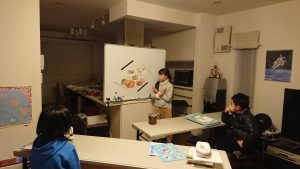 (写真☟)7番手さんです。これまた6番手さんの発表と互角の勝負でした。時制の一致も問題なく、時間の流れもしっかりとおさえてきましたね。彼女の発表に対しては、聴き手側からも質問がチラホラ出ました。お正月に「散らし寿司」をいただくアイデアは、私も取り入れようかしら。「散らし寿司」は彩も鮮やかで、卓上が華やぎますね。声もしっかり届いていましたし、早口にならずに聞き取りやすい発表でした。