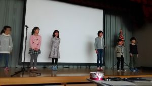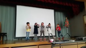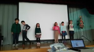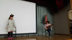 その前に、お礼から。5年生女子の生徒さんに音響とコメンテイターをお願いしました。リハーサル無しにも関わらず、スムーズに進めてくださいました。また、幕間の英語でのコメントも感情豊かに発表してくださいました。この勇姿を見て今年のLevel 3の生徒さん(後輩)が後に続いてくれることを期待します。