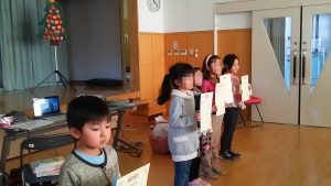 Christmas dayにも関わらず保護者様におかれましては、たくさんご参観をいただきましてありがとうございました。また、アンケートのご記入もありがとうございました。まだお出しになっていない保護者様は1月のレッスンでお子さん経由でお出しくださいますようお願いいたします。アンケートboxを教室に設置しておきますので、そのまま伏せてお子さんに入れてもらってください。