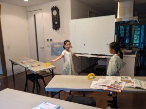 もっと英会話たいそう_Unit_2 は、Would you like some tea? / Yes, please. / Here you are (go). / Thank you. といった文言を足して、スキット発表をしました。今日もあぶなかった生徒さんがいましたが、全員合格としました。来週は、次のunit noに入ります。