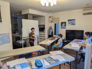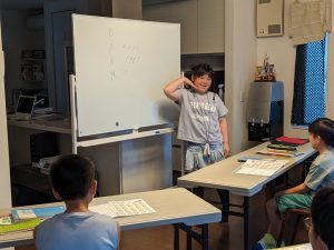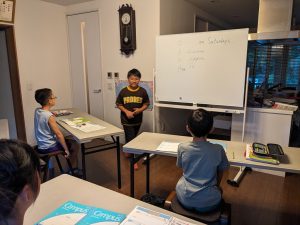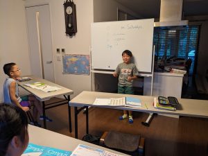 Greetings: 「夏休みに何をやったか」を堂々と説明のできた生徒さんもいれば、現在形になってしまった生徒さんもいましたね。