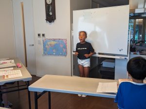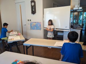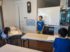 Greetings: 「夏休みは何をするの?」→ 「何をしたの?」の発表をしていただきました。お母さん先生と練習をしてきた成果は出ましたか?