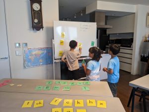 その後、2文字子音のFlash card activity (writing)をしました。普段から練習をしている生徒さんは、満点が取れていましたよ💡 ノートをご参照になり、褒めてあげてください。