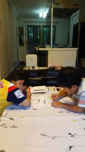 をしてもらいました。”grapes”をred colorで塗ったSくん。