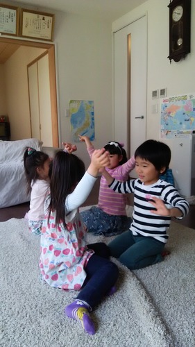 上の写真は、Superstar Songs 1のTPR指導の様子です。